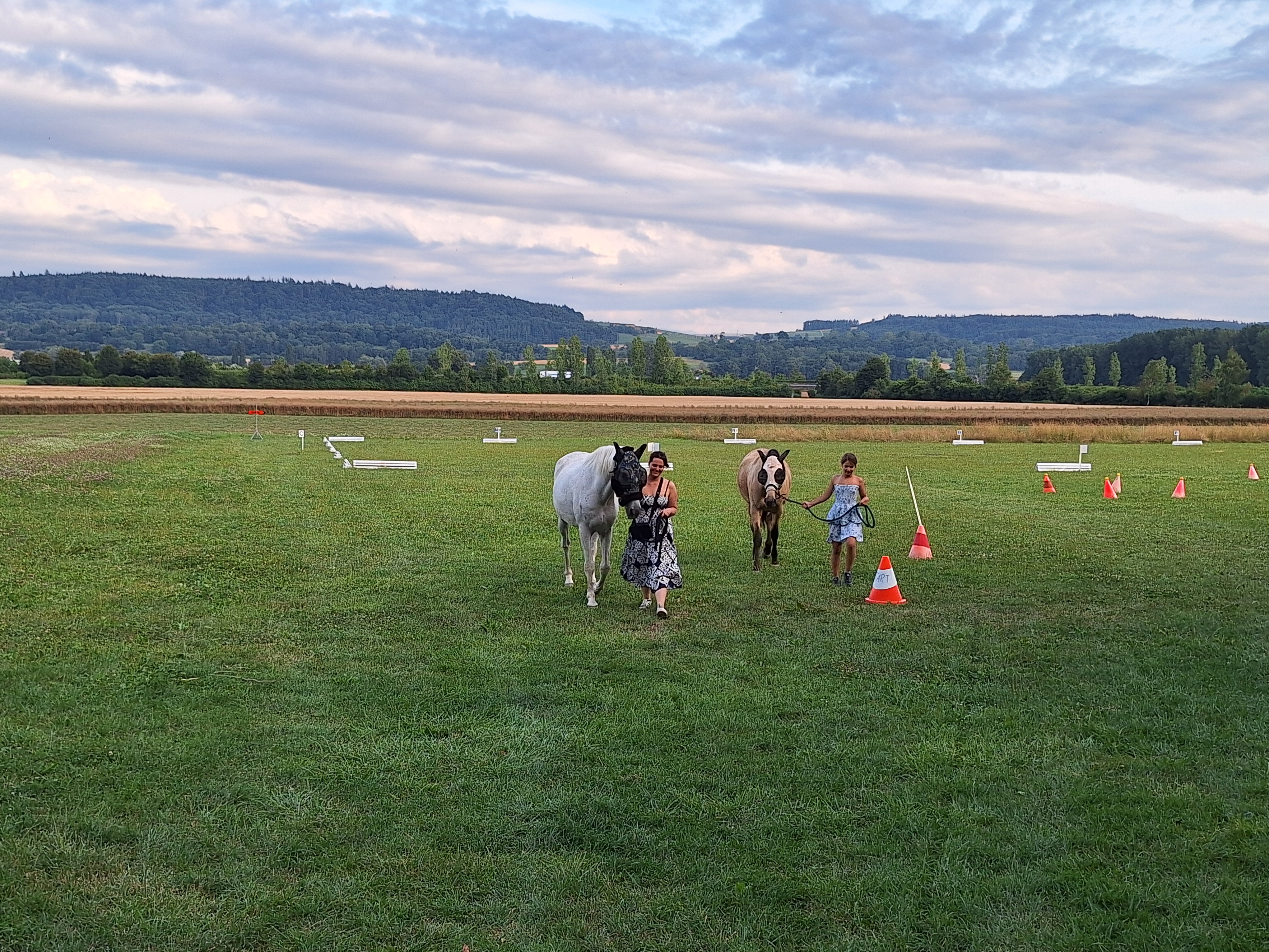 Das Turnier selber lief ganz ordentlich. Aber irgendwie schien meine Dressur mit Huapango den Richtern nicht so zu gefallen, obwohl ich selber zufrieden war, abgesehen von 2 deutlichen Patzern. Infante lief in der Dressur super. Beim Stiltrail gab es bei beiden kleinere Patzer, aber Infante blieb trotz Windböen, die die Stangen durcheinander wirbelten oder die Richterblätter hinter mir her bliesen, recht cool, worüber ich mich sehr freute, da das deutliche Fortschritte sind im vergleich zu früher, wo er extrem spannig und nervös war. Am meisten stolz bin ich auf meine beiden Speedtrails, die deutlich mehr Geschwindigkeit aufweisen als früher und somit mich nicht mehr soviele Rangierungen kosten. Sehr gefreut hat mich auch, dass ich den Harmoniepreis in der Klasse S bekommen habe. Mega cool! Es hat Spass gemacht, auch mit meinen beiden Mädels unterwegs zu sein. Tausend Dank für Deine Hilfe Corinne. War mega schön, dass Du dabei warst.