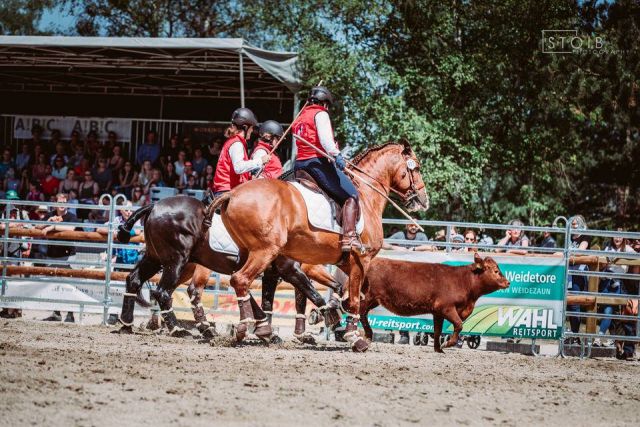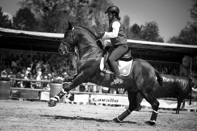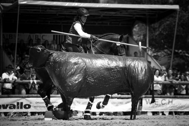 Nachdem Cholito nach seiner Verletzung praktisch 1 Monat Boxenruhe vom Tierarzt verschrieben bekommen hatte, konnte ich wenigstens ca. 1 Woche vor München wieder anfangen ihn zu reiten. Am 5.-7.5.2018 fand zuerst das Bootcamp mit unserem Nationaltrainer Bento Castelhano bei uns statt (herzlichen Dank Isidor fürs Sponsoring von Deiner tollen Anlage!) und am 8.5. fuhren wir schon los nach München. Da ich mit der Verletzung von Cholito leider kein einziges Turnier im 2018 vor der WM reiten konnte, war Cholito die ersten Tage sehr angespannt. Somit lief auch die Dressur am 10.5.2018 leider nicht so gut, da Cholito mega angespannt und nervös war. Somit lagen wir schon weit hinten in der Platzierung (41. Platz/Dressur von 45 Teilnehmern). Spannend für mich war aber, dass ich davon doch profitieren konnte, da ich merkte, wie ich Cholito bei solchen Situationen nehmen muss, wenn er sehr verspannt läuft. Am zweiten Tag lief er schon etwas besser und ich war eigentlich ganz zufrieden mit Cholito, auch wenn er nicht wie sonst in seiner Paradedisziplin lief. Wir landeten auf dem 21. Platz als 2. beste Schweizerin, nicht viel hinter Carène. Auch der Speedtrail lief gar nicht schlecht, obwohl das nicht unsere beste Disziplin ist. Wir waren im Mittelfeld. Leider war die Richterin Nicola Danner der Meinung, ich wäre zweihändig geritten anstatt einhändig. Obwohl sich Christine toll für mich eingesetzt hatte, um auf einem Video zu beweisen, dass das nicht stimmt, wollte die Richterin ihr Urteil nicht zurücknehmen und hat mich disqualifiziert. Traurig aber wahr! Schade, vor allem auch, da es ja nicht stimmte. Tja so ist es eben. Bei der Rinderarbeit lief es ganz ok, auch wenn es nicht gerade eine Glanzleistung war (obwohl diese Disziplin zu unseren Stärken gehört), aber da spielen auch Glück und Team eine Rolle. Cholito und ich belegten dort den 16. Platz. Im Team waren wir bei der Rinderarbeit auf dem 6. Platz.