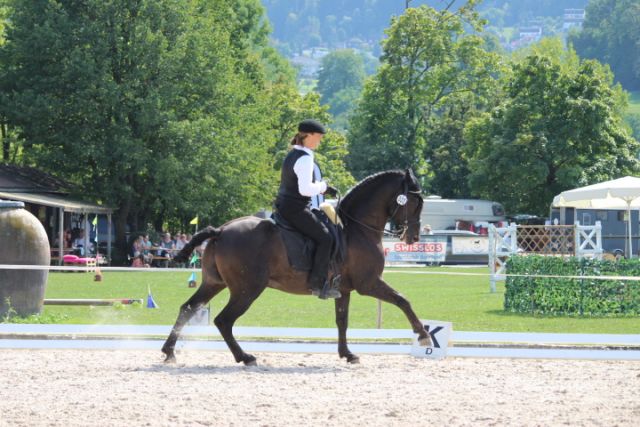 Bei heissen Temperaturen fand ein weiteres tolles WE Turnier statt, und das in Aesch (Nähe Basel), wo es eine tolle Aussenanlage mit Dressurviereck und Rasenplatz hat. Zum ersten Mal mit dem neuen Sattel von Peter Menet (den ich erst seit kurzem besitze) und einer anderen Kandare. Zuerst lief es etwas mässig, da Cholito wie immer extrem angespannt war. Mit der Dressur war ich nicht sonderlich zufrieden, vor allem der Trabteil machte uns Mühe. Die Maniabilité war ganz in Ordnung, obwohl Cholito extrem angespannt war. Ich nutzte sie auch um Cholito etwas zu schulen, dass er besser an den einzelnen Hindernissen ruhig stehen bleibt. Der Speed fühlte sich wirklich ganz gut an und ich war stolz, endlich mal den Mut zu finden die Seitwärtsstange im Galopp zu nehmen. Peinlicherweise habe ich dafür den Ring sogar fast im Stand noch verfehlt. Naja, überraschender Weise habe ich in der Gesamtwertung sogar den Sieg in der Klasse S geholt, vor den beiden tollen Reitern der Westschweiz. Freue mich sehr darüber und hoffe, dass es mit Cholito und dem neuen Sattel weiterhin bergauf geht.