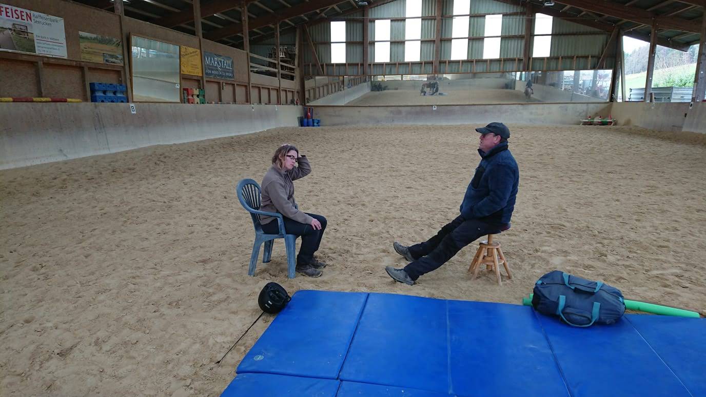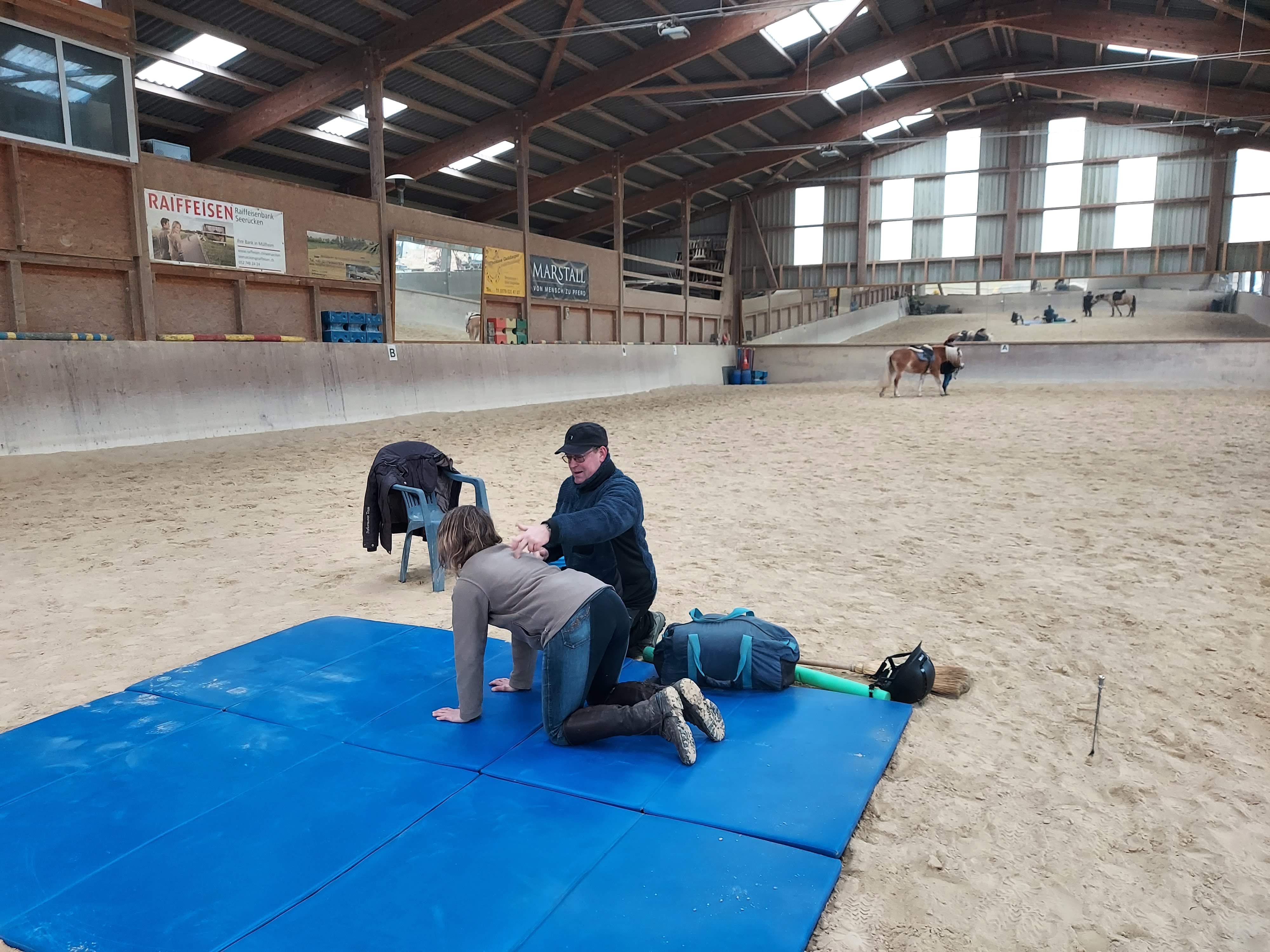 Unser jährlicher Winterkurs mit Martin Volesky zeigt uns immer wieder, wie wichtig ein guter Sitz beim Reiten ist. Mit gezielten Uebungen am Boden werden die Sitzfehler auskorrigiert und verbessert. Immer wieder erstaunlich, was für Auswirkungen das hat.