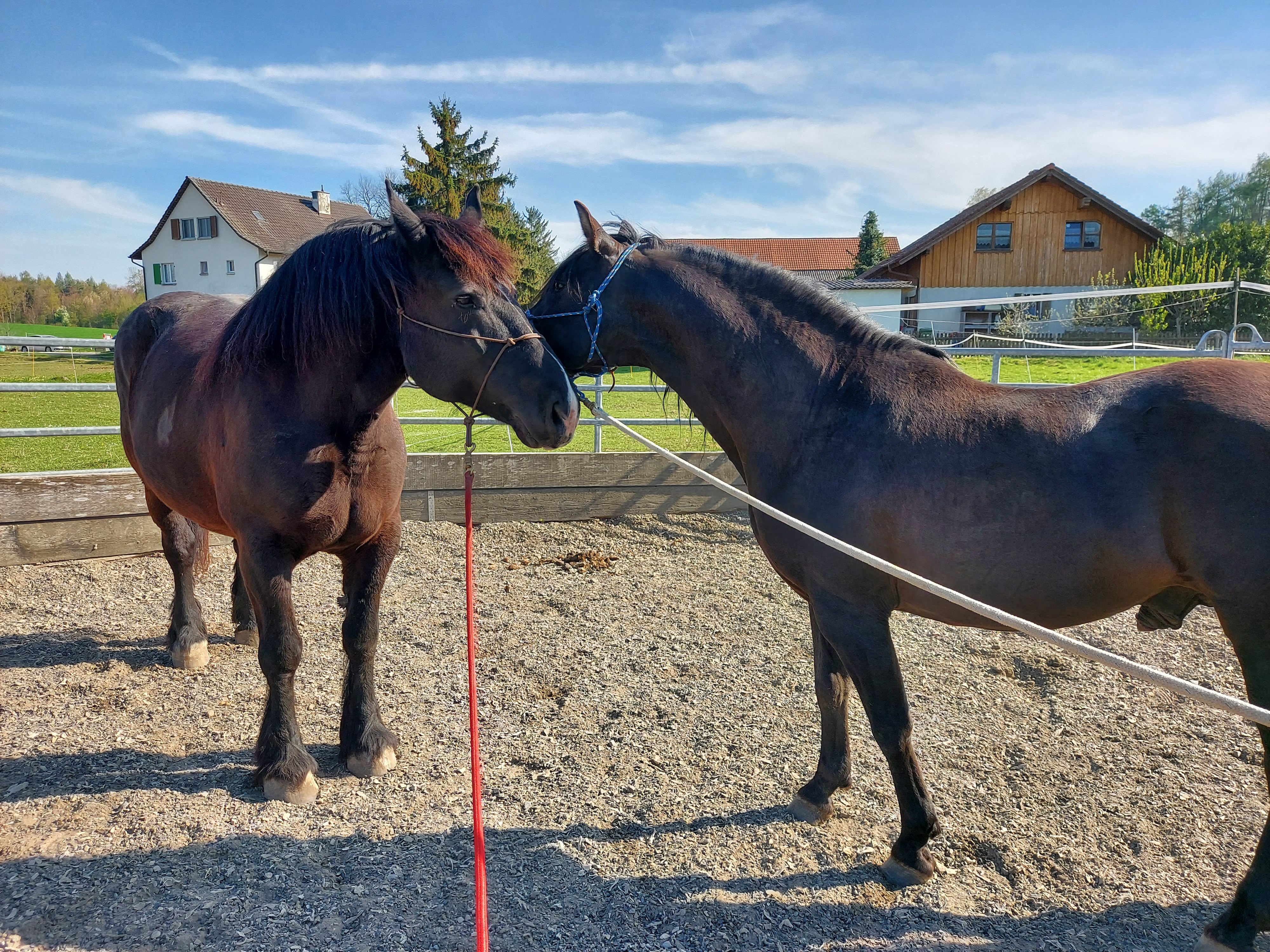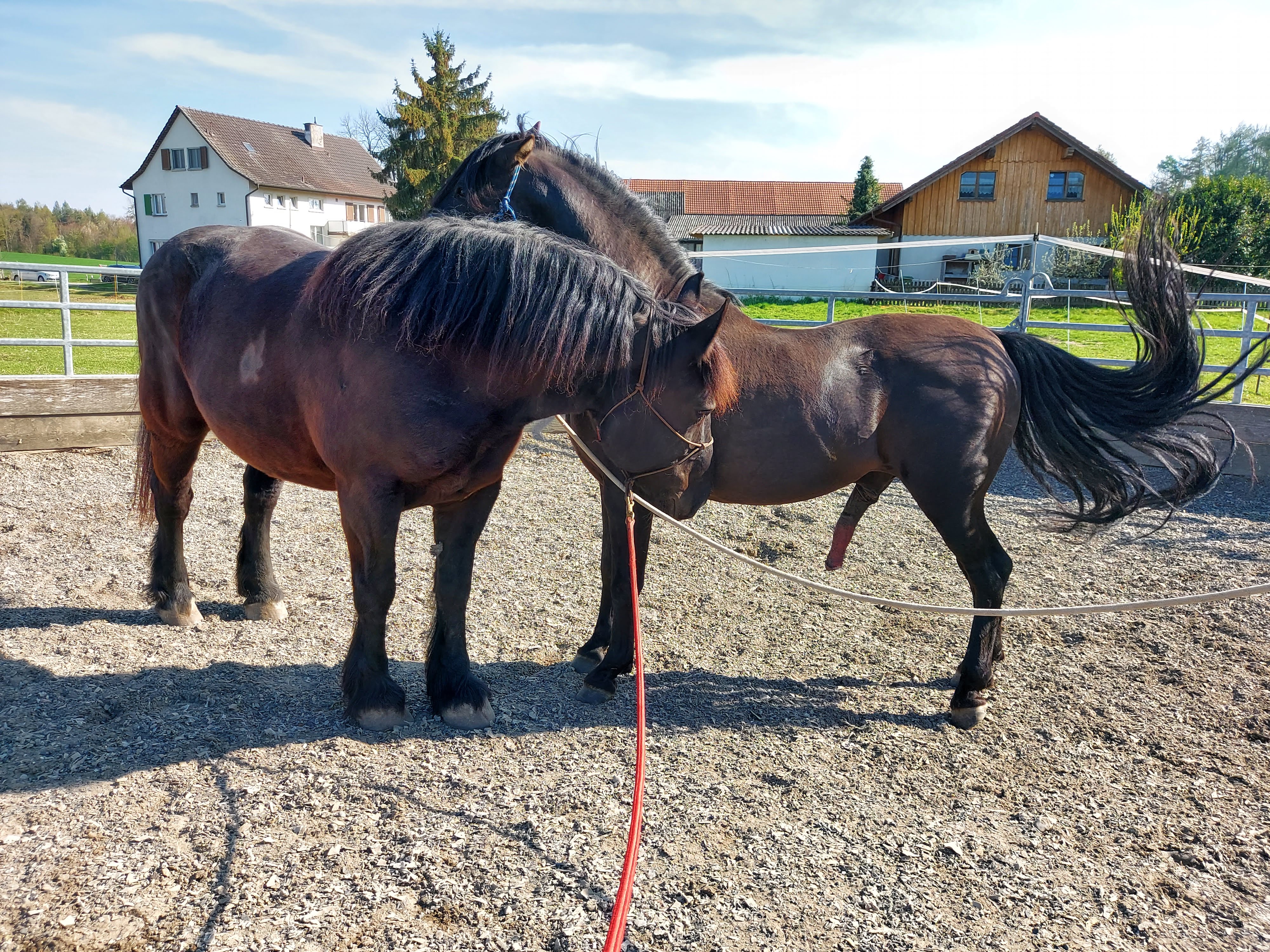 Auch dieses Jahr durfte mein erfolgreicher PRE Hengst Cholito (EM und WM Teilnahme für die Schweiz in der Working Equitation und auch viele verschiedene Platzierungen und Siege in mehreren Disziplinen) wieder einige Male decken, was ihn und natürlich auch mich sehr freut. Eine sehr spannende Anpaarung haben wir zum ersten Mal, nämlich mit einer Kaltblutstute (Percheron).