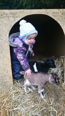 Einen Tag vor Samichlaus hat Mimmi uns zwei obersüsse Baby-Zwerggeissen geschenkt, die wir schon sehnlichst erwartet haben. Auch Marisa ist begeistert davon und möchte nun ständig ins Kleintiergehege. Aber kein Wunder, die sind einfach zuckersüss.