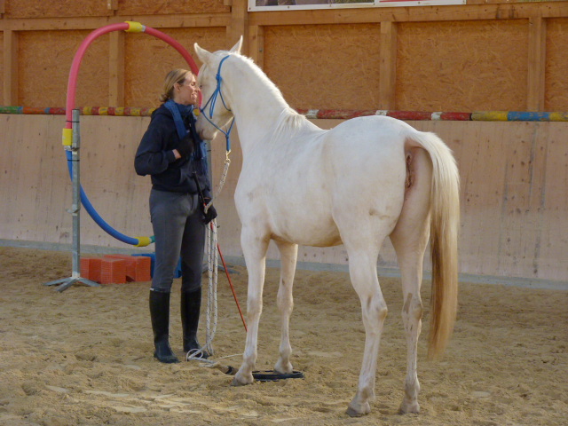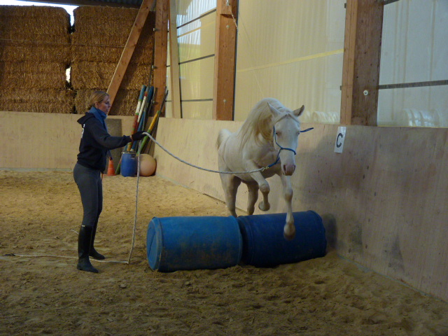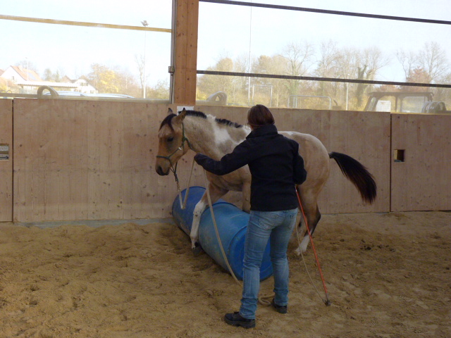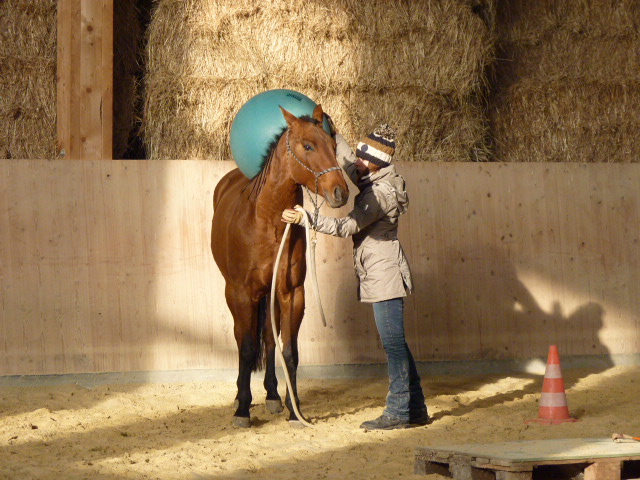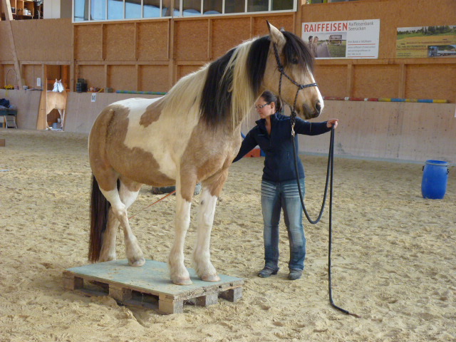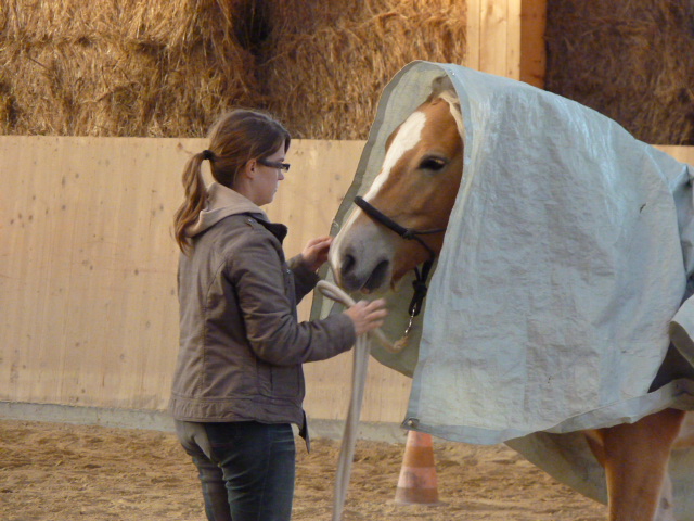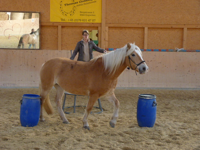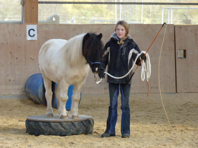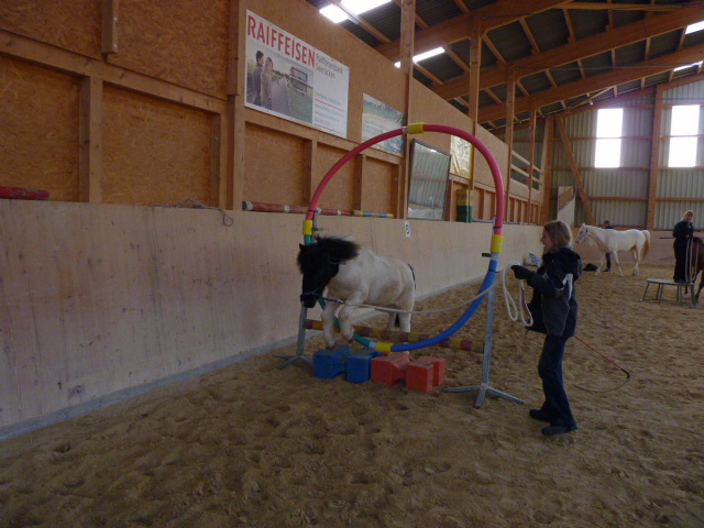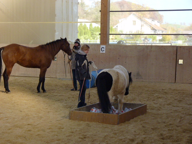 Am Sonntag, den 1.11.2015, habe ich mal wieder einen Natural Horsemanship Kurs (Bodenarbeit) für Einsteiger durchgeführt. Am Morgen haben wir alle 7 Spiele von Parelli durchgenommen. Am Nachmittag habe ich einen attraktiven Parcours aufgestellt, wo es galt, die Aufgaben anhand der 7 Spiele zu lösen. Anfangs hatten noch einige Pferde Mühe mit den einen oder anderen Hindernissen, doch am Ende konnte mehr oder weniger alles erfüllt werden. Die Teilnehmer merkten bald, dass z.T. die Dinge, die einfach erschienen, wie z.B. mit beiden Vorderbeinen auf einen Deckel zu stehen, sich als sehr schwierig herausstellten. Natürlich war auch nicht jedes Pferd gleich einfach zu händeln, aber die Arbeit zahlte sich aus und ich glaube am Schluss ging doch jeder zufrieden nach Hause und war stolz auf sein Pferd.