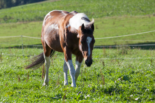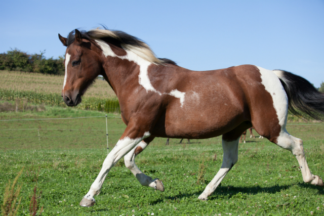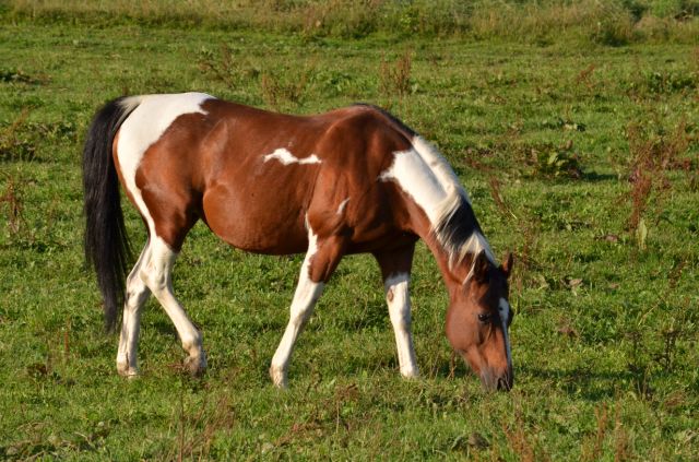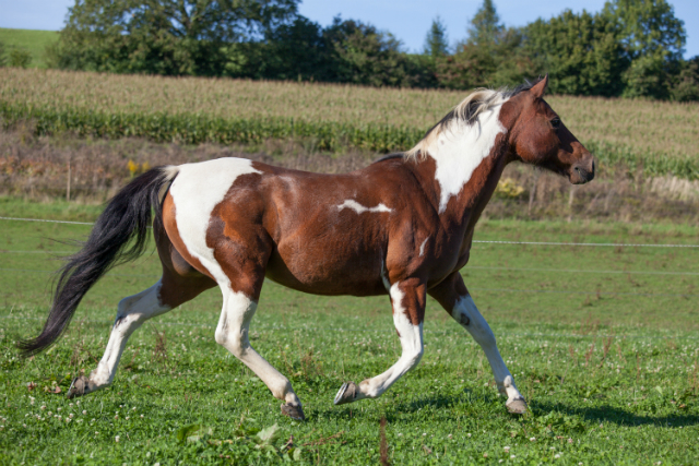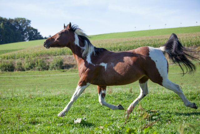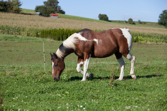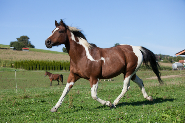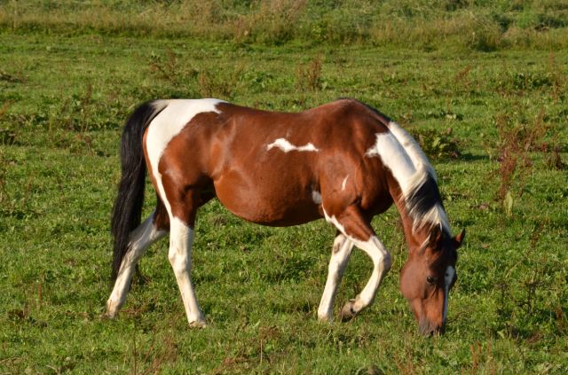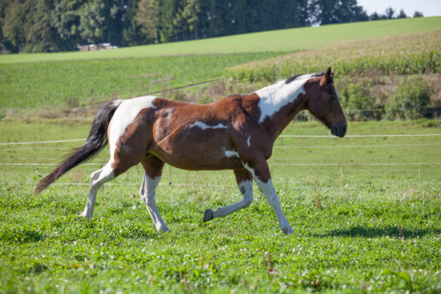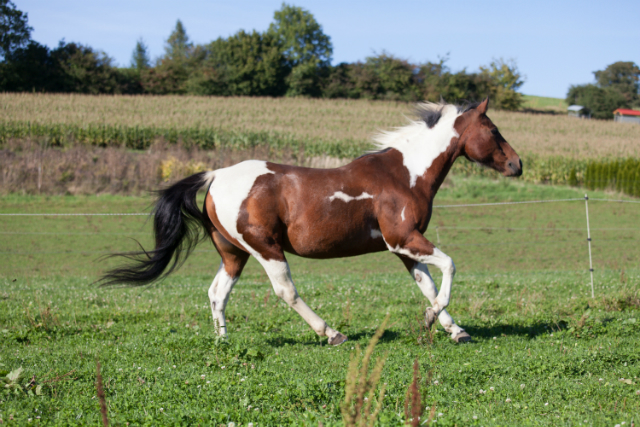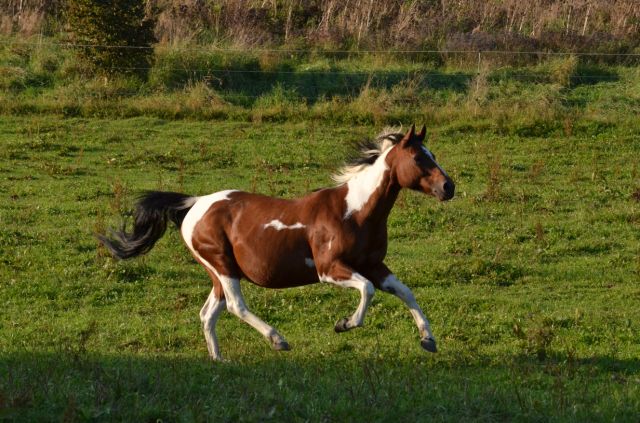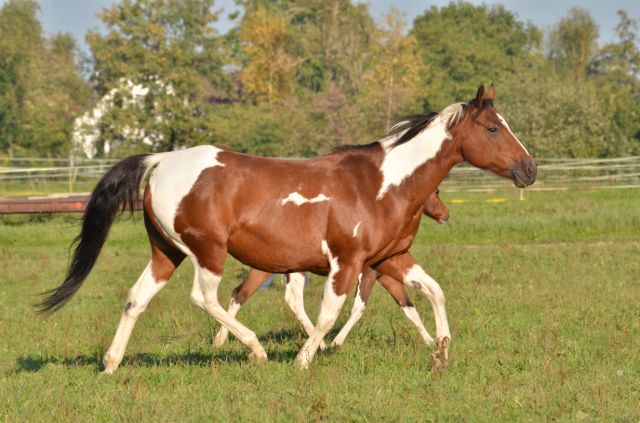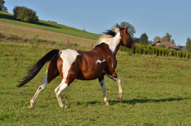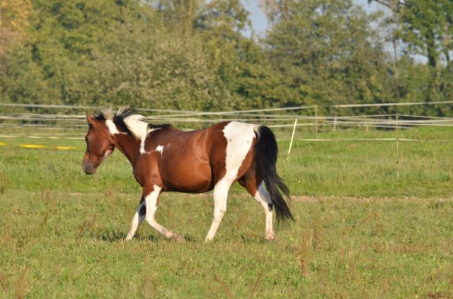 Painthorse-Stute in bay-tobiano, geboren am 26.4.1997